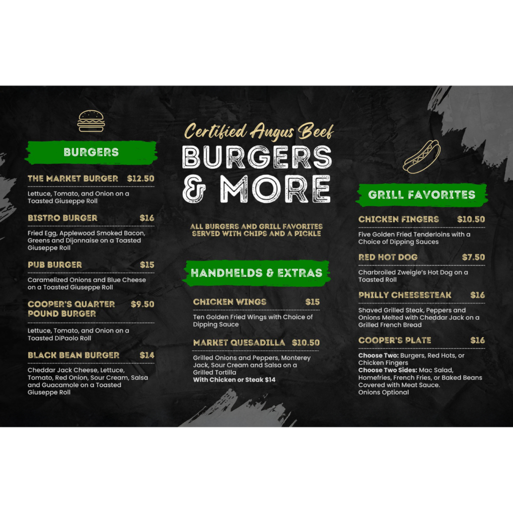 You’ll receive a print-ready PDF file of your new menu, and any other digital format required to upload your menu onto a screen, social media, or your website.